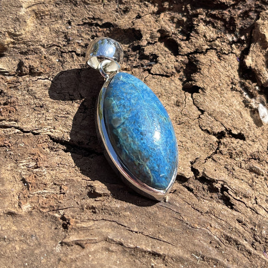 Raw Blue Apatite Sterling Silver Pendant