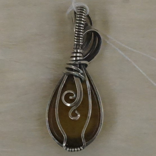 Hand wrapped Sterling Silver Amber Pendant