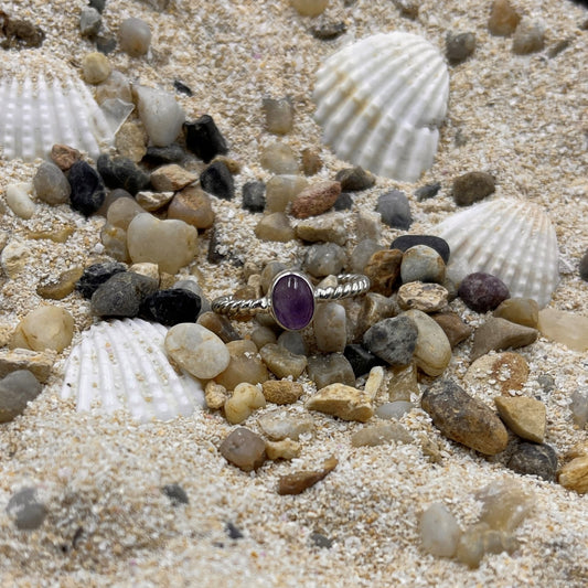 Amethyst Sterling Silver Faceted Round Ring (Size 10)