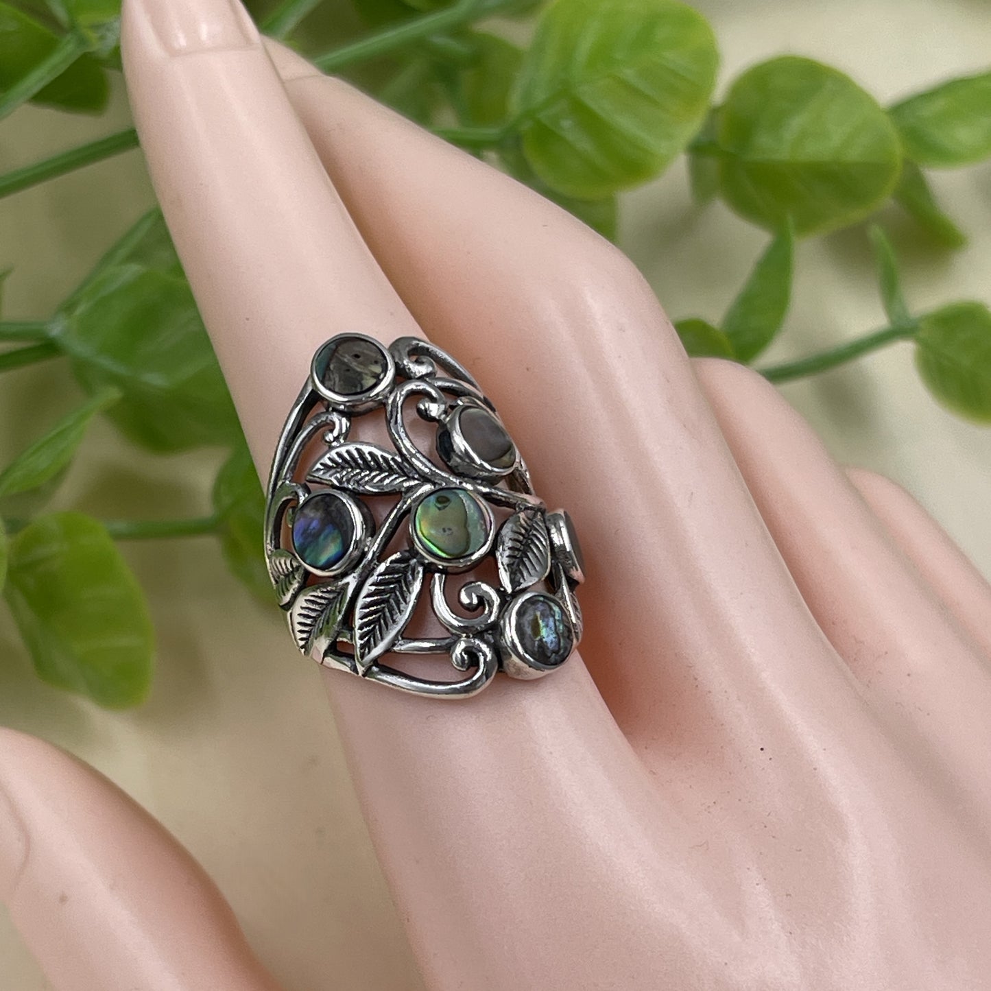 Abalone/Paua Shell 925 Sterling Silver Filigree Leaf Ring