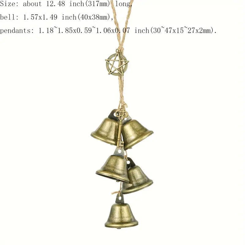 Witches Bells are a traditional protective charm used in many spiritual and pagan practices. Typically made from small bells tied to a cord or hung on doors, they are believed to ward off negative energy, evil spirits, and unwanted influences through their sound.