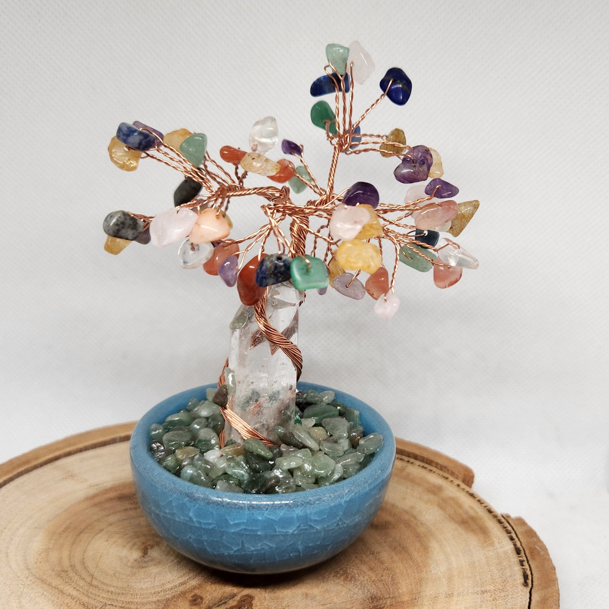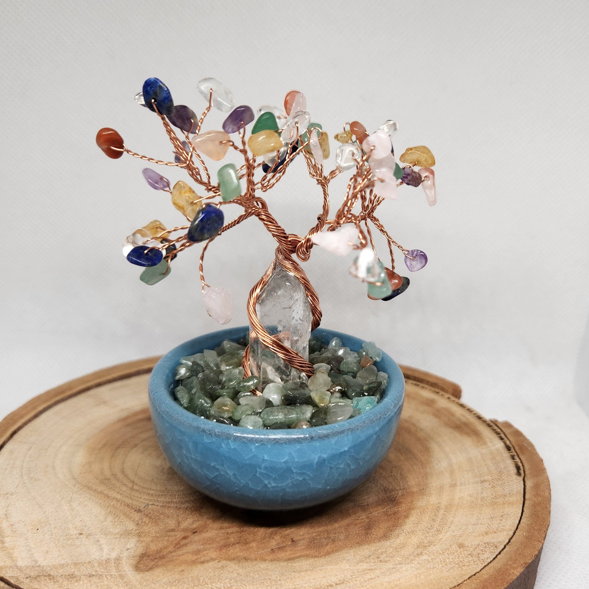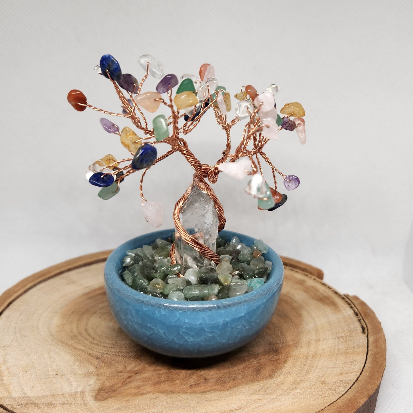 Chakra Tree With Clear Quartz Point In Blue Pot
