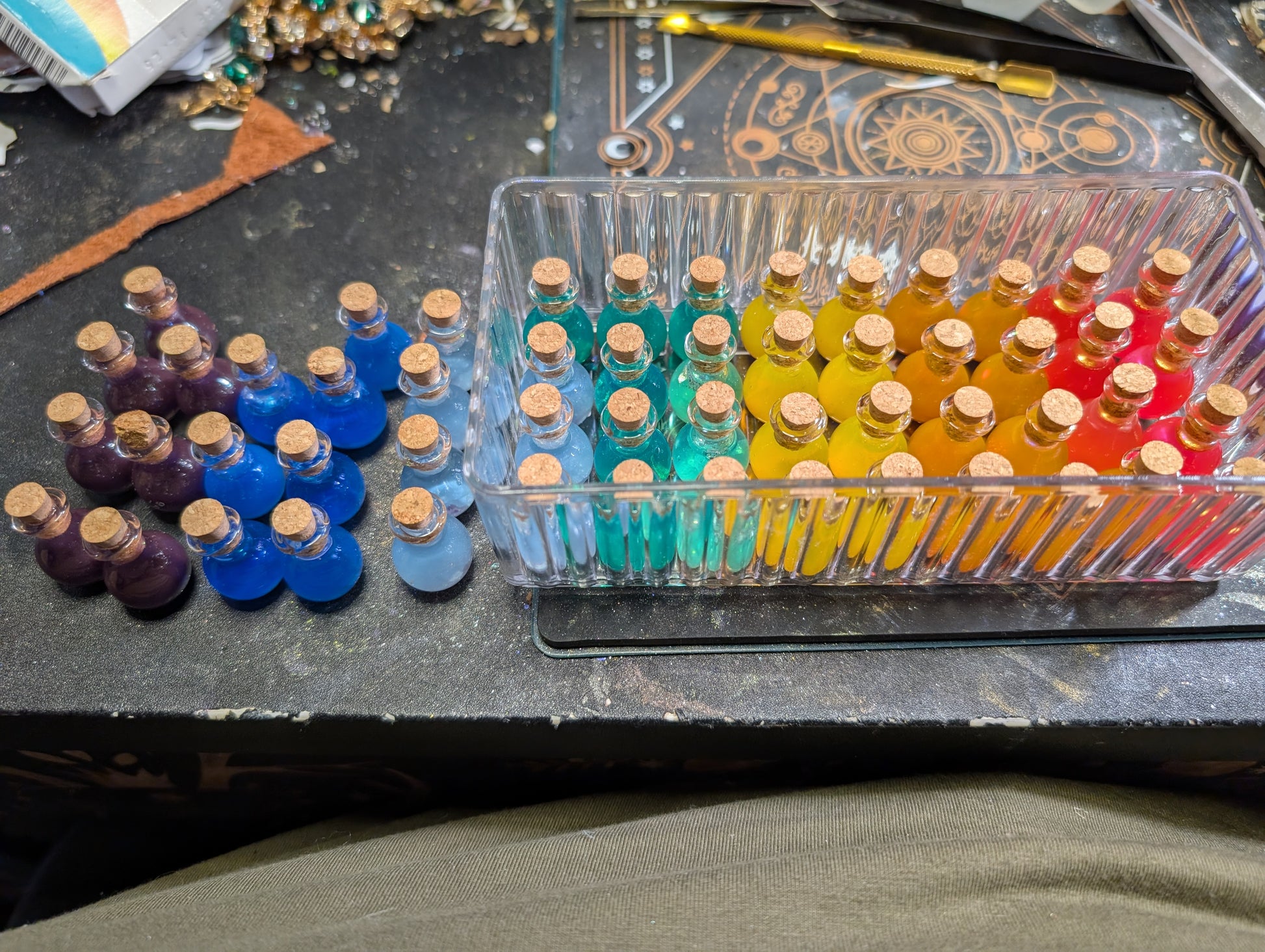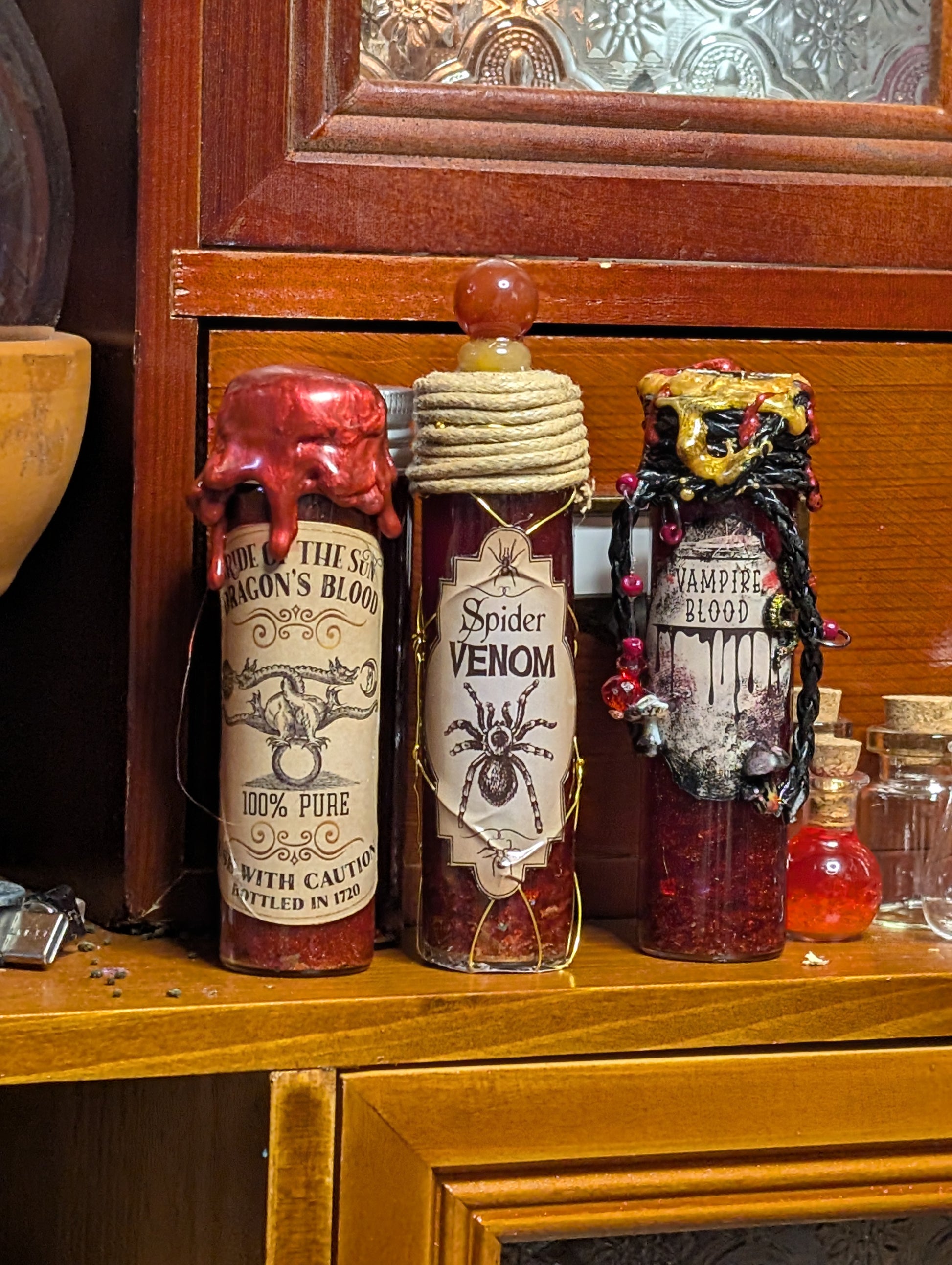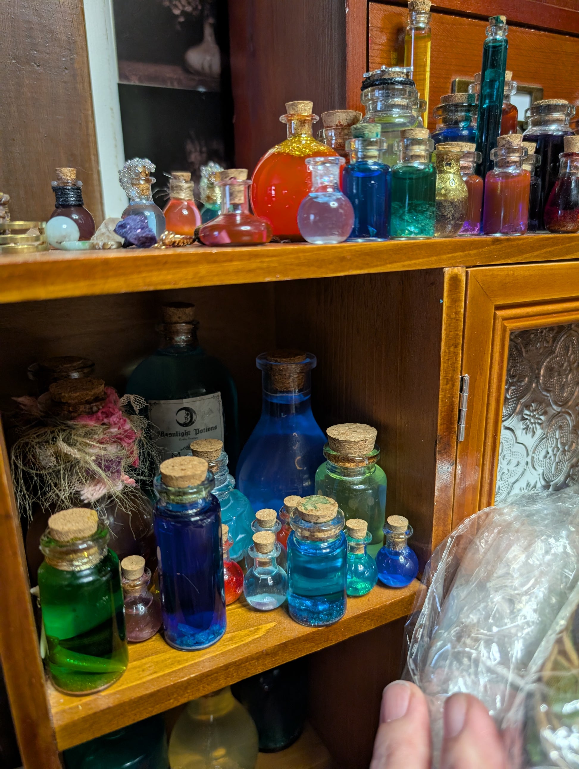Potions of all kinds, watch them magically change colour when shakes, be mesmerised by the swirling mysteries inside.