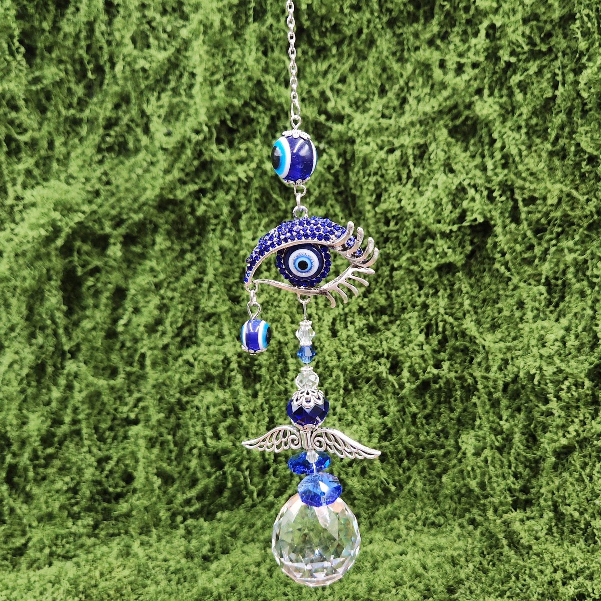 An Evil Eye sun catcher is both a beautiful décor piece and a powerful symbol of protection. Designed to reflect and scatter sunlight, it fills a space with dancing light and uplifting energy. The Evil Eye symbol, rooted in ancient tradition, is believed to ward off negative energy, jealousy, and ill intentions. Hung in windows, cars, or sacred spaces, it acts as a protective talisman while enhancing the environment with color and light. Ideal for home, office, or spiritual areas, this sun catcher brings beauty, positivity, and energetic shielding, making it a thoughtful gift or meaningful addition to any space.