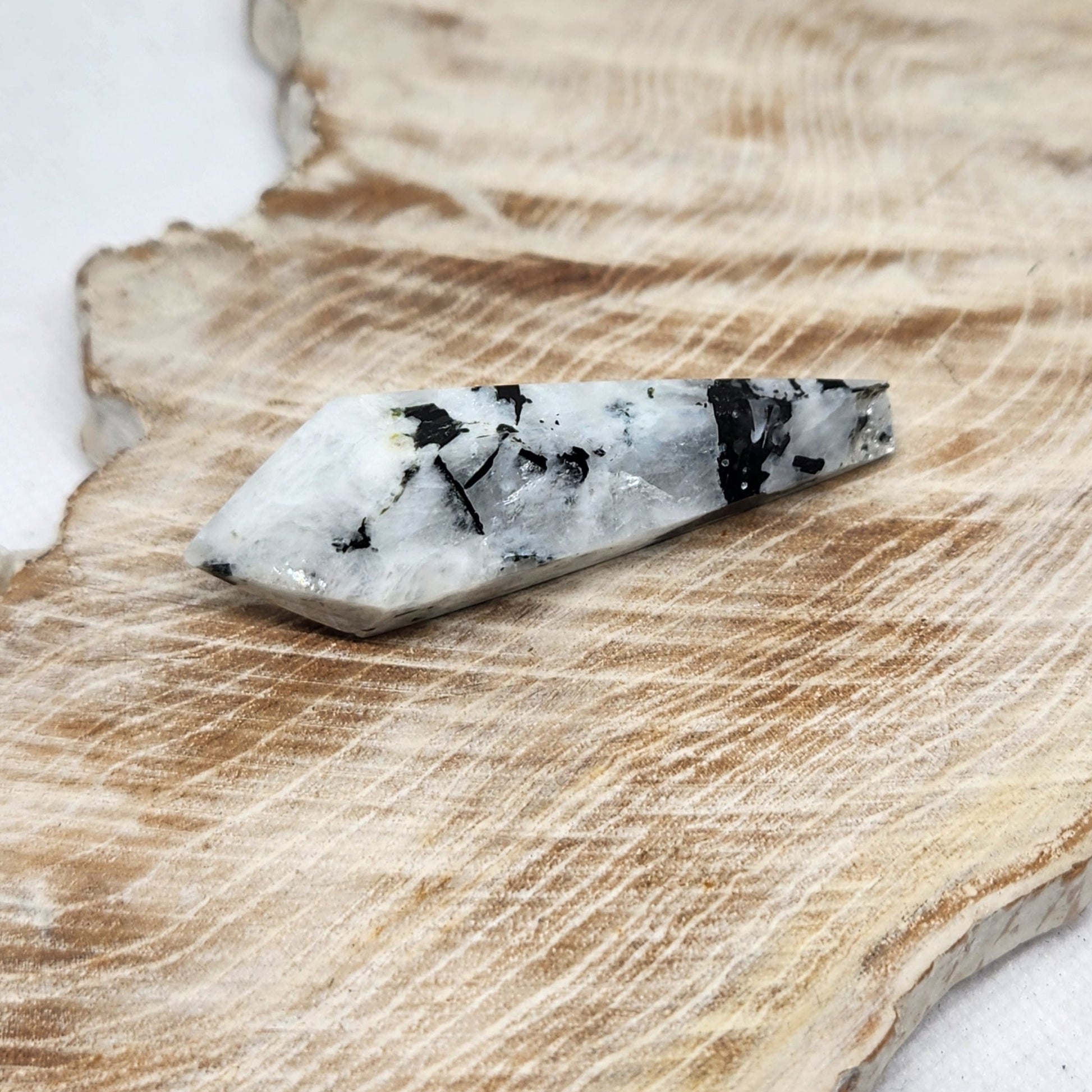 Rainbow Moonstone is a captivating crystal known for its iridescent sheen and calming energy. Associated with the crown chakra, it enhances intuition, spiritual growth, and psychic abilities. This stone is believed to bring balance, harmony, and hope, making it ideal for emotional healing. It also aids in alleviating stress and stabilizing emotions. Rainbow Moonstone is often used to promote inner peace, self-discovery, and a deeper connection to the divine, making it a cherished tool in meditation and spiritual practices.